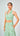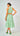A print you might find tucked away in a Parisian archive — soft rows of green ribbon drifting across an ivory base, designed for days that feel like slow mornings in sunlit salons.