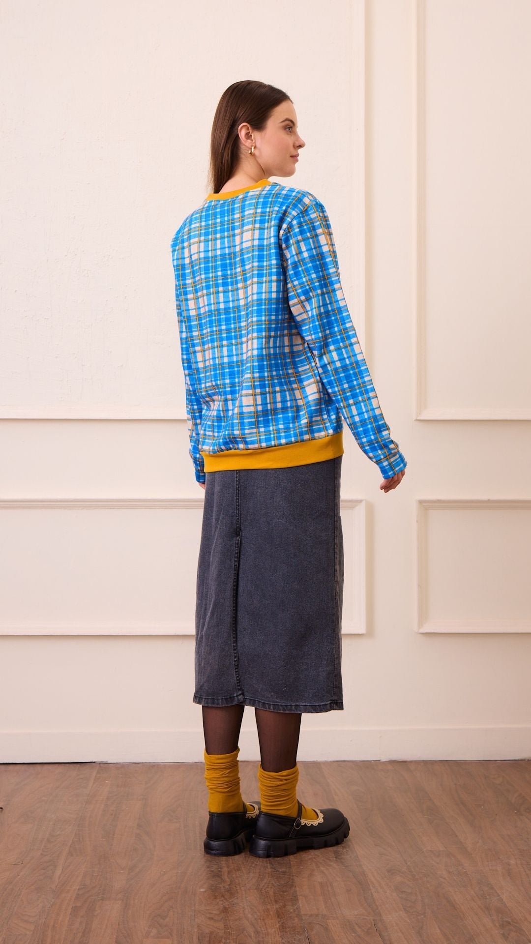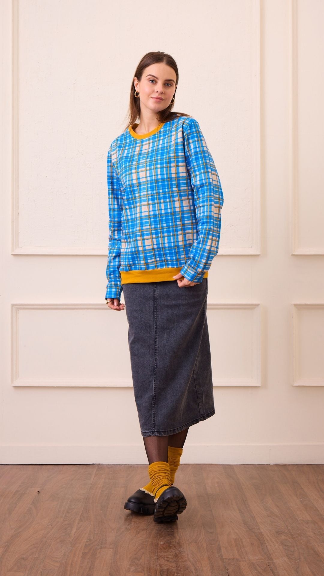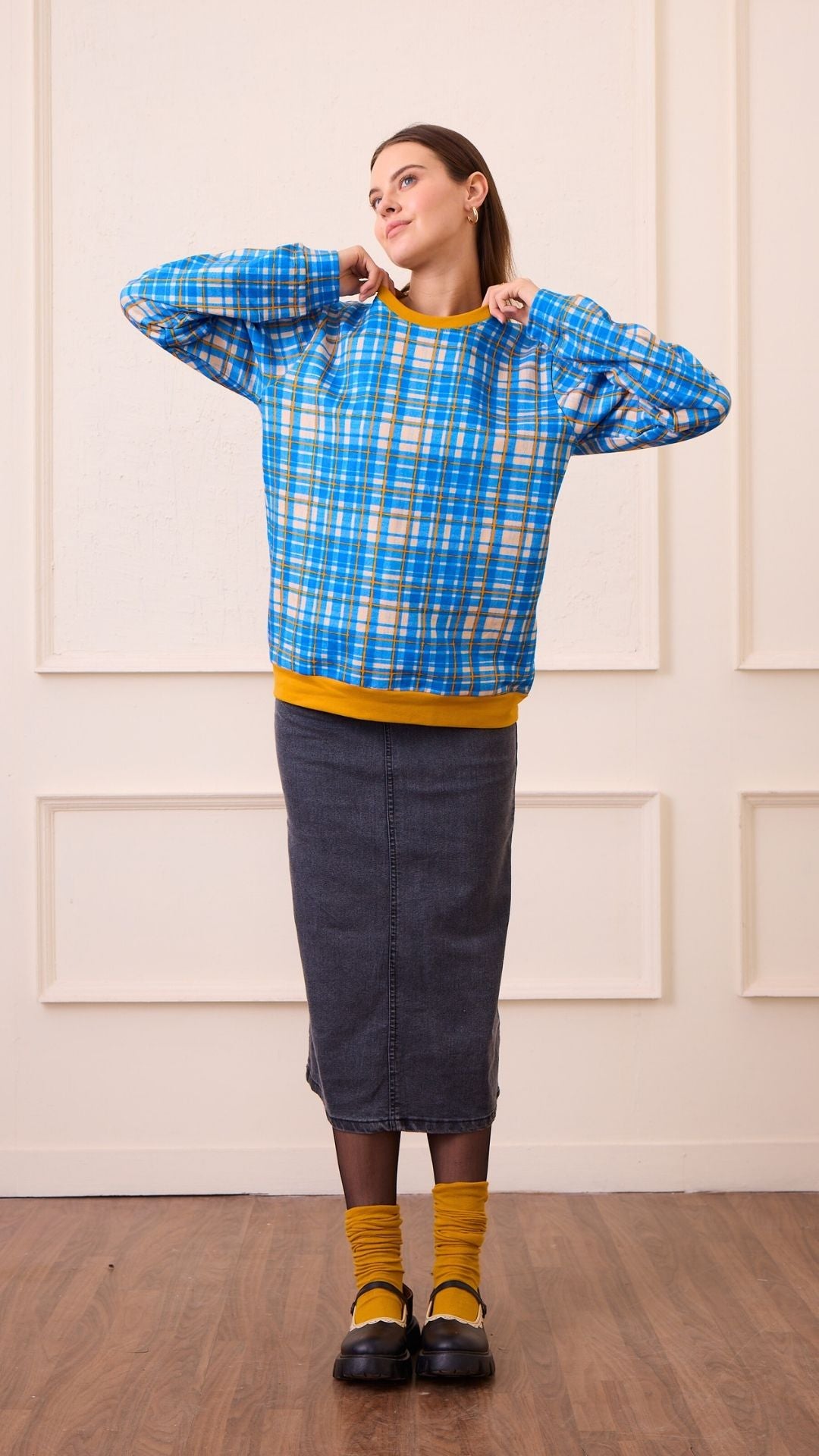 • Classic plaid, made modern, in this geometric interpretation of the sky, Before Golden Hour; that perfect in-between moment — soft blue light, golden edges, and an easy sense of calm.