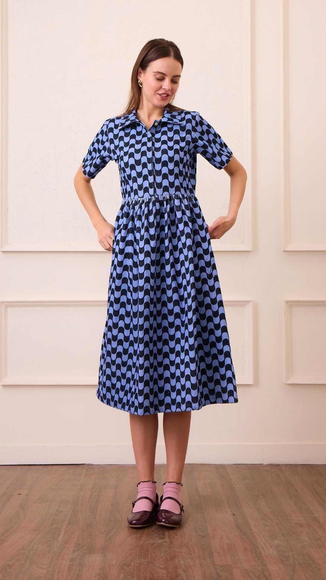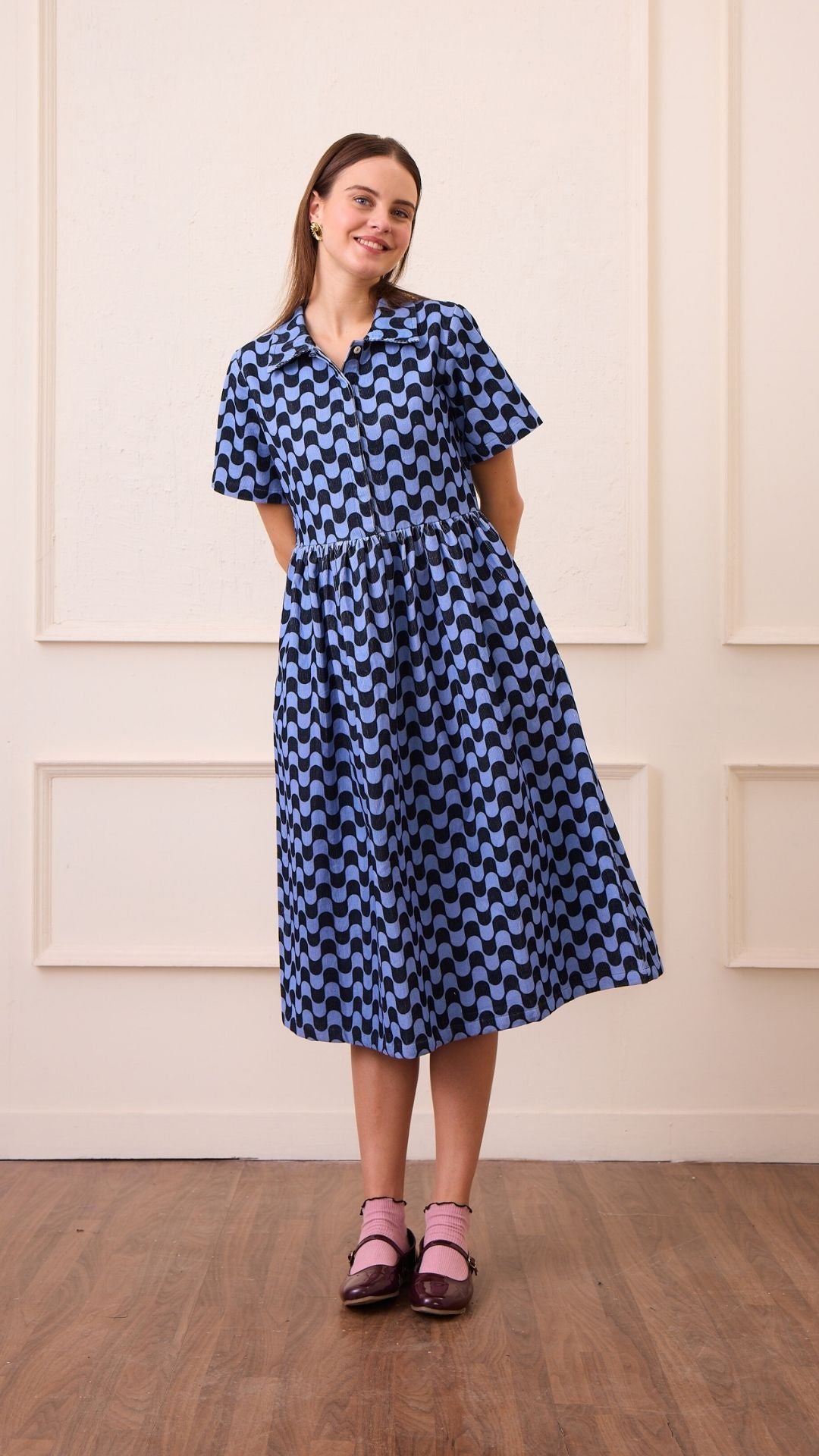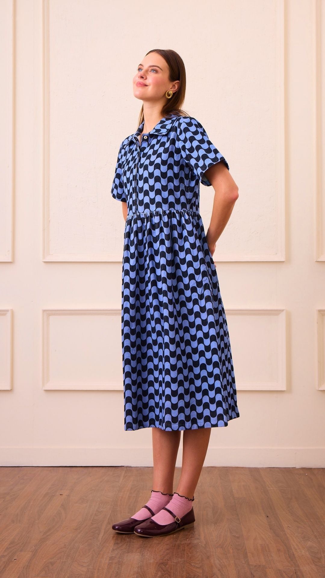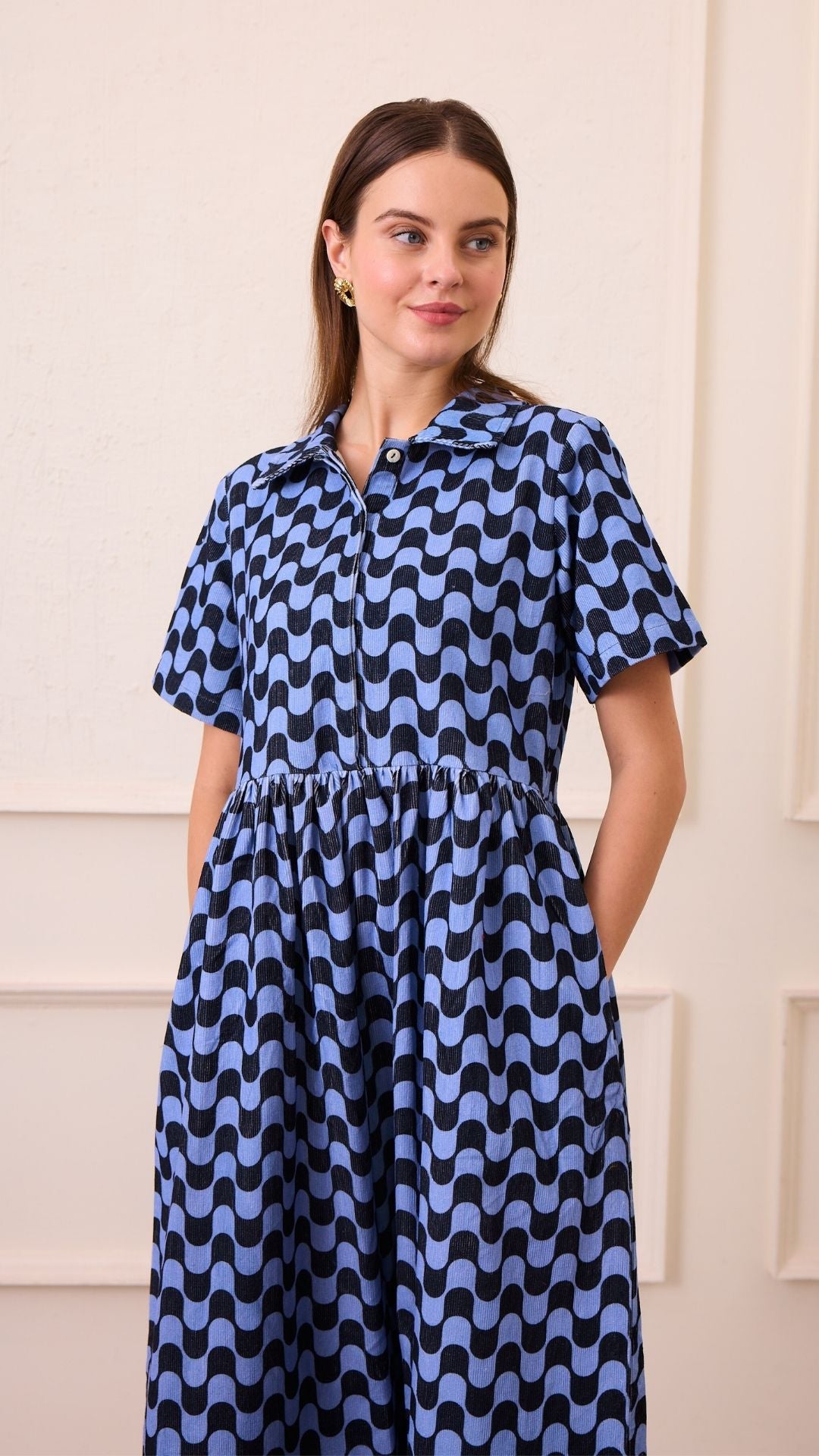 • Short sleeved, corduroy shirt dress